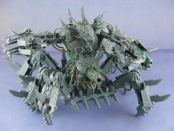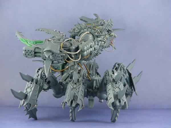 I love all the extra bionic/organic/daemonic bits you've done. But there just doesn't seem to be a Word Bearer theme to him - but then again, what would be an appropriate Word Bearer theme for a gigantic daemonic engine from the pits of hell eh? lol