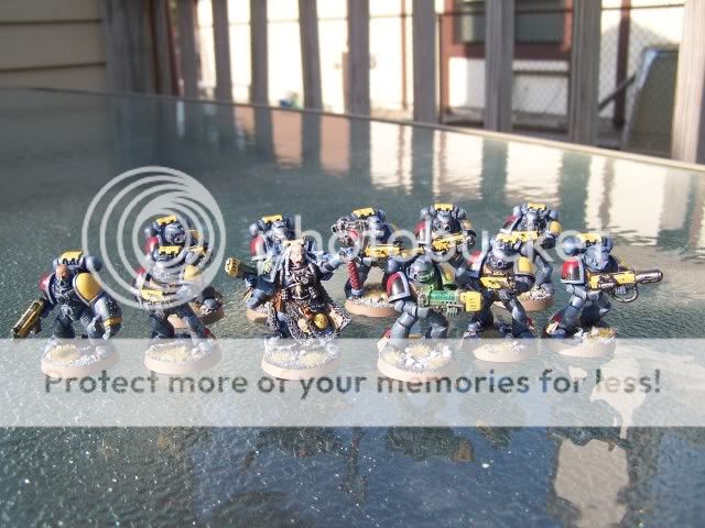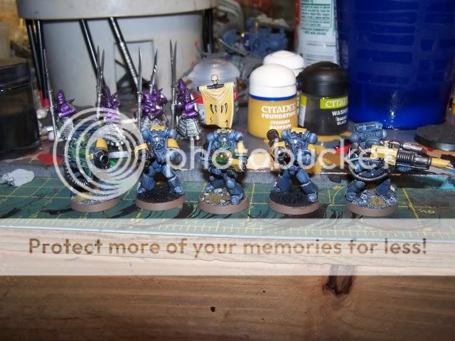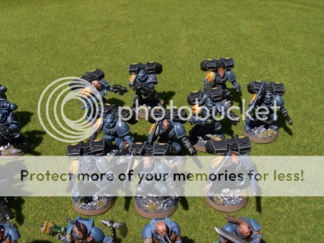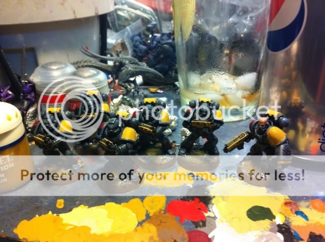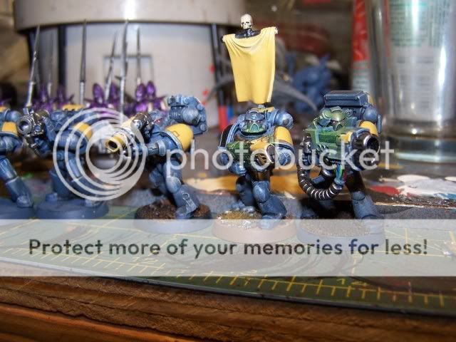 I got one grey hunter squad done with the yellows. I'll get the fine detail on em done tonight and take a picture. Tomorrow I will ge the othe unit of hunters done and that leaves the small details on the skyclaws.