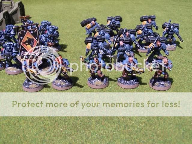 Not too much a fan of the Shadow Grey, but as you said that's the camera's fault. Your paintjob however is very good, very clean and as others have said the Rune Priest is excellent. The wolf scouts also look very good as well.