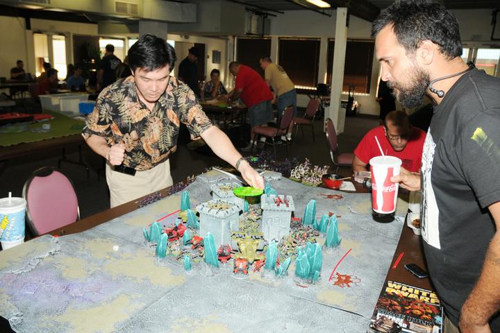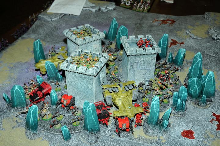 Morehammer(Sol) deserves a lot of credit too because all the terrain he creates and all his completely painted armies really lend these battles to photography. How awesome are those crystals?