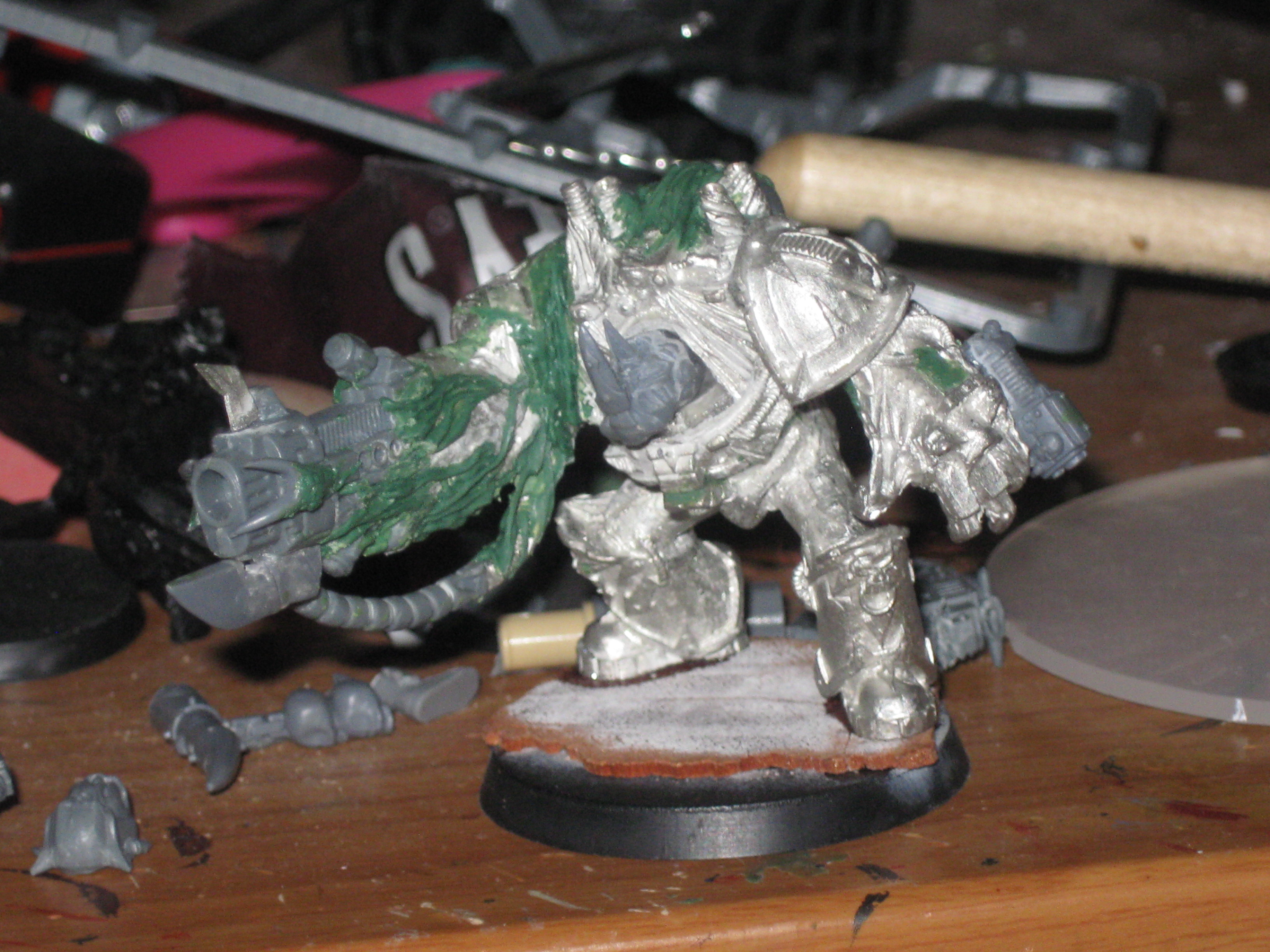 Ive had these obliterators sittin in drawer for sometime and finally decided to make em. I liked the general idea of obese corrupted techmarines with the ability to grow destructive appendages on a whim. but i dont like the idea of having a dozen different weapons at once. if you had eight different guns wouldnt you shoot em all off? so i had the idea of giving them one big main weapon. i also think they should be a little more individual as they can warp their bodies to their will. (plus i really hate those angry fetus heads they come with) and so i began converting....