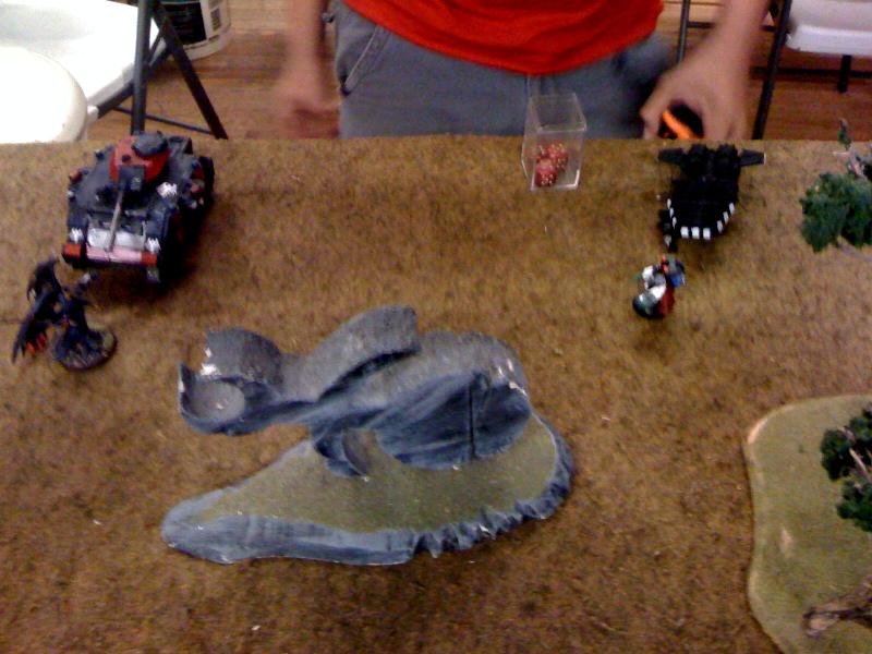 Chosen finally come on, on the left flank, they light up the rhino (losing two of their own to overheats) and immobilize it.