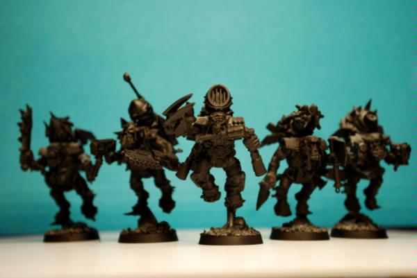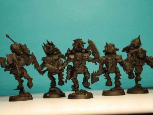 With some help from my daughter, I(we) decided that I(we) wanted to do the Stormboyz first, so with her picking out which heads and arms went with the bodies, I got the first box put together, based and primed.