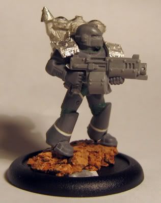 About a year (2?) ago, I was convinced I was going to do a steampunk Marine army for some 40k->Warmachine rules I was writing.. This is about as far as I got. Needs more rivets!