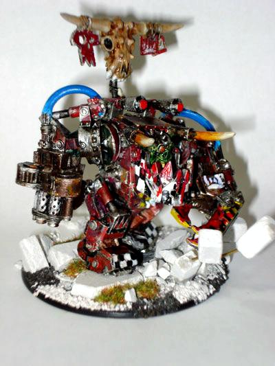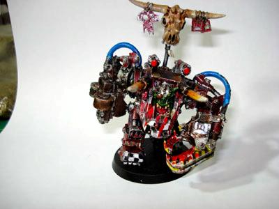 Thanks guys- yes the red over the metal was intentional. A LOT of dry brushing on edges, Orks don't strike me as really the touch up paint job type, this dude is a warlord he's been around so it made sense that his armor would be torn up and rusty etc.