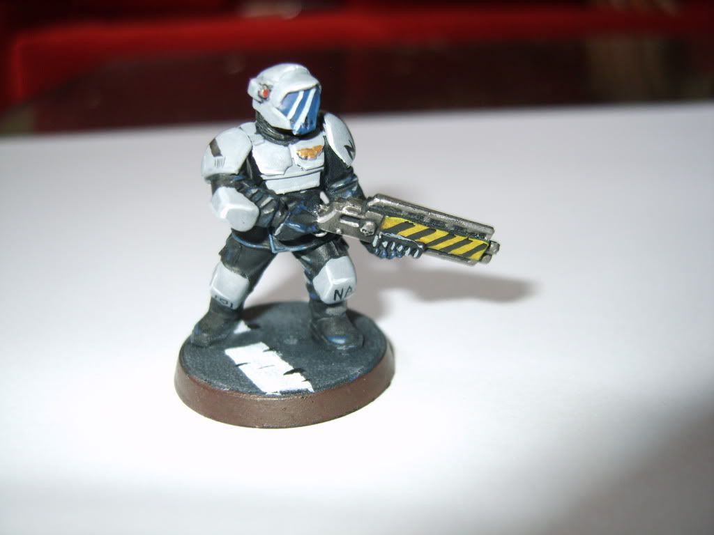 A similar colour scheme to what I was thinking, though I was only going to have dark grey fatigues rather than black, and I was going to go for an orangy gold visor.
