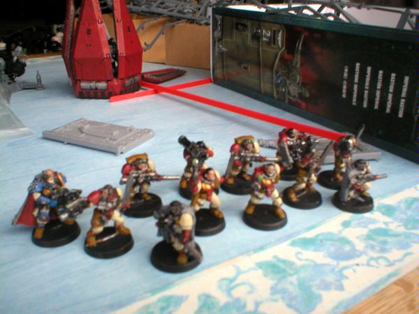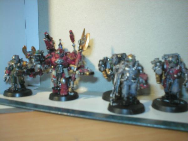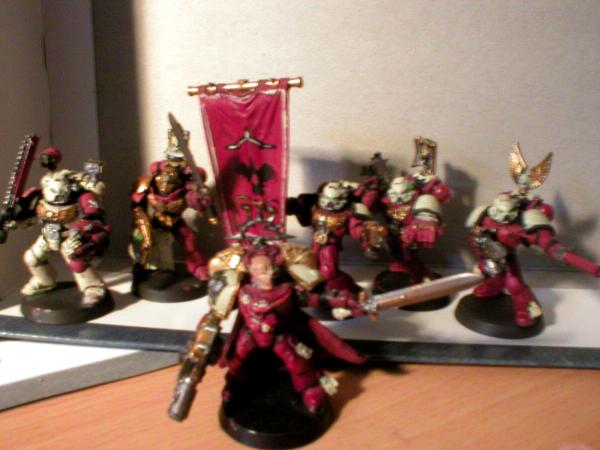 They've proven pretty much a waste of points ingame (but I play small 'uns) but they are one of my favourite squads... from left to right: Apothecary, Company Champion, Standard bearer with