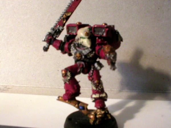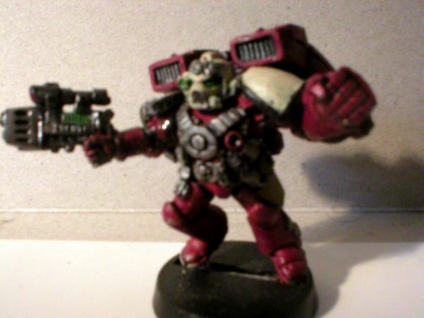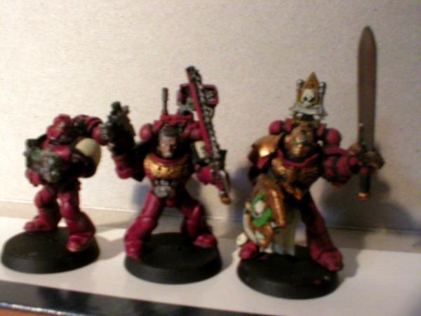 MC (painted) bolt pistol, Veteran with Power Fist and Bolt Pistol, Veteran with Flamer and Chainsword aaand in front; my Commander with a combi-melta and Relic Blade.