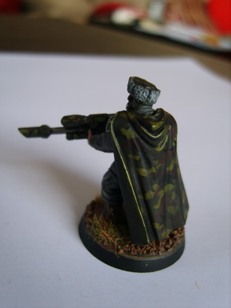 Cadian Body, Closed Helmet head from Pig Iron, Shotgun from SM Scouts and greenstuffed knee and elbow-pads. I'm officially the World's Worst Greenstuffer (TM), but those were easy enough.