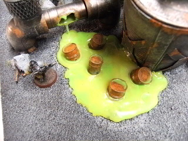 The "sludge" stuff is just hot glue with some yellow paint underneath with a watered-down mix of scorpian green and gloss varnish on top.