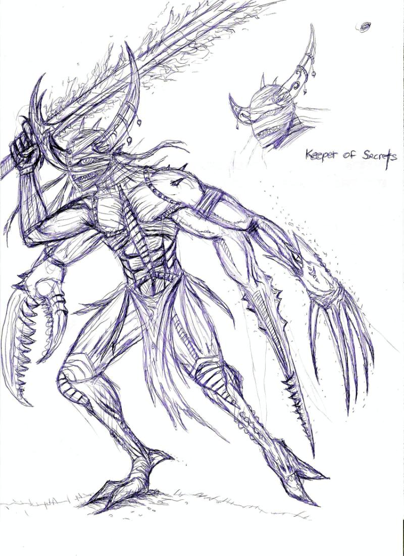 Lexicanum wrote:Each of Keeper of Secrets has a unique appearance that mirrors Slaanesh's mood at the time of its creation. Their looks can range from terrifyingly haunting but almost human to bestial, though all are tall and lithe with long claws and limbs and a crown of horns that sprouts from their head and intoxicating eyes that look like black crystals