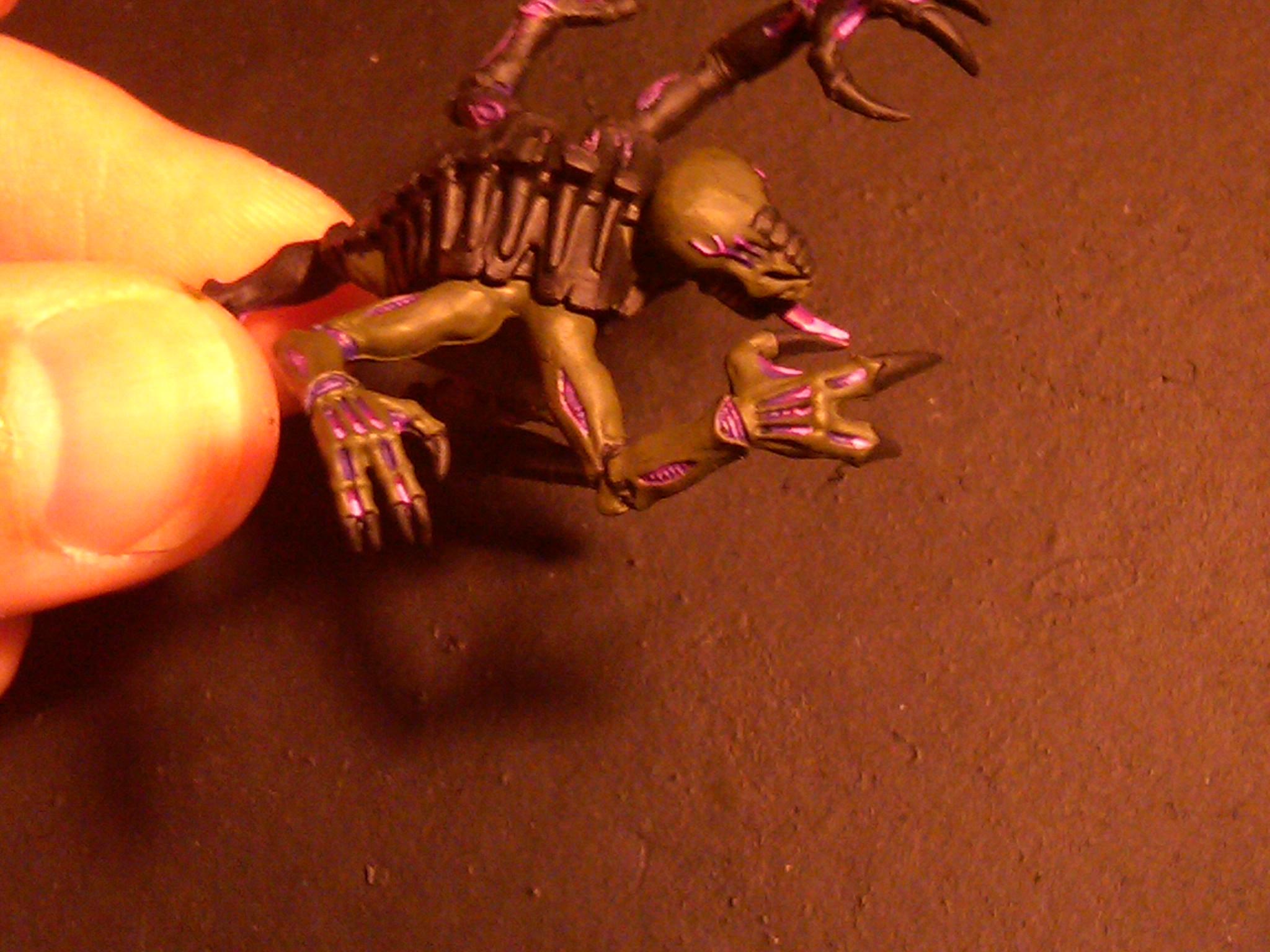 Altimera - Yes, I find that painting on the flesh bits is much easier for me, because I do base coat lich purple, then highlight with warlock purple, then top it off with tentacle pink. That would be a little hard doing that after the fact.