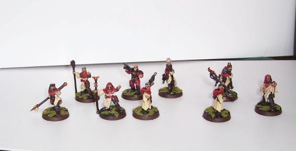 A bit too mutant for my liking. The codex has them much more guard looking . I used flagelants with cadian arms , and any bald head I could find , cadian sarge, space marine sarge and a few from the flagellant box. I supose its all about how you see tham. I know of a few references of them from the black library , both from Mr Abnett where psykers are described in different books as in the codex and as deformed in a cage. Like I said I went fot the codex version after all they are ment to be armed with a pistol and a cc weapon and have armour, Automatically Appended Next Post: Oh some pics.