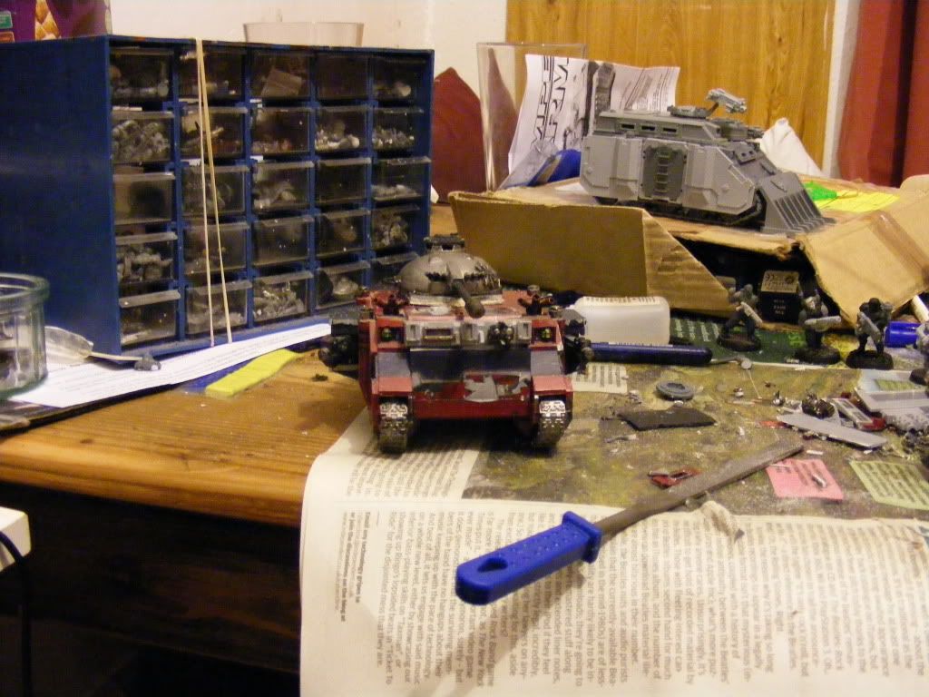 So after 2 hours work, 1 radio station and part of my finger later i produced the following, what do people think of it? Suggestion for a better front plate (i hate the random thing i've thrown together if i keep it i am removing the weird looking storm bolter and adding another visor slit in.)