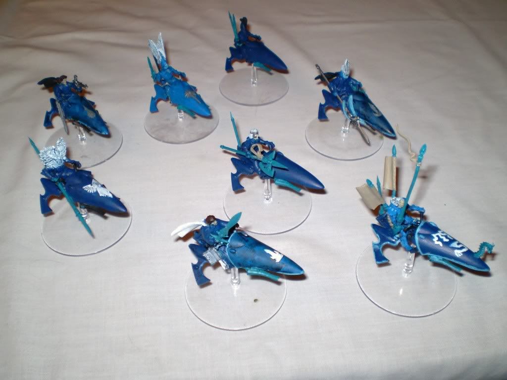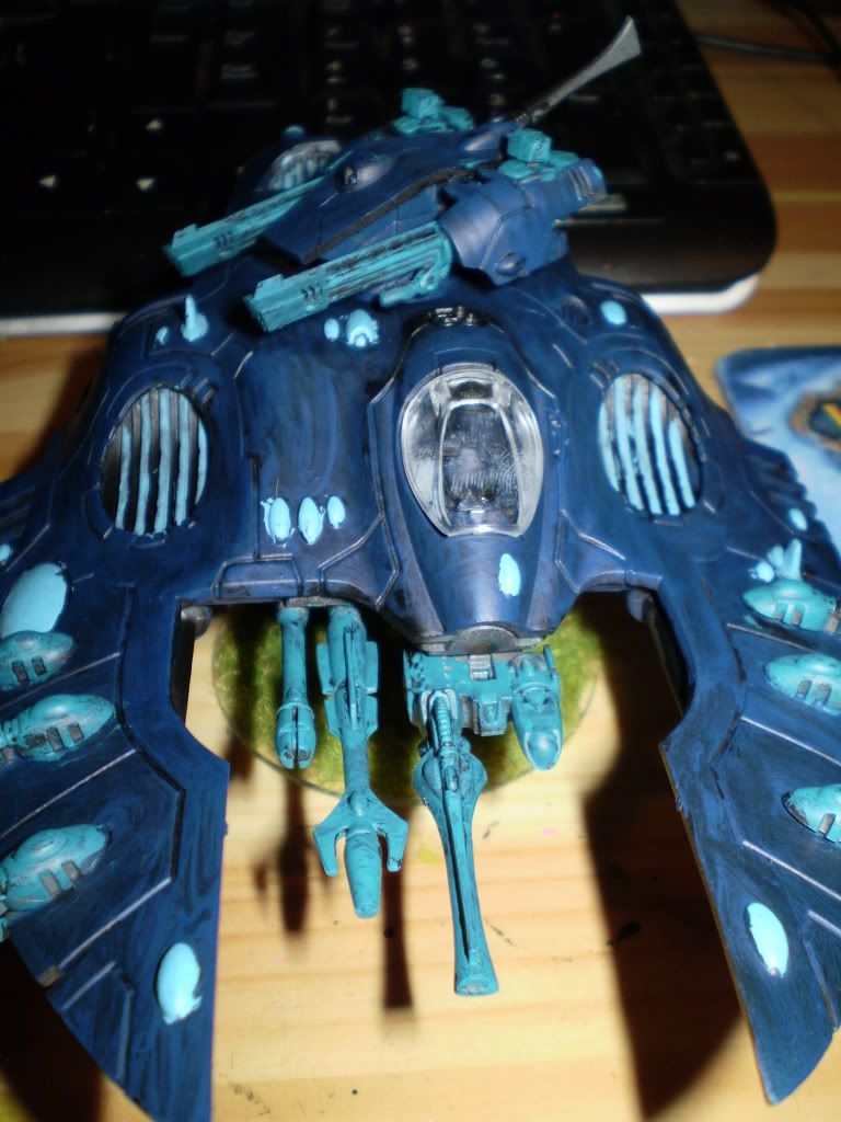Callum, it's a nice start, your choices of blues is good but they do not really offer any sort of compliment to each other, in other words they don't really break the model up so to speak, teqniques such as shading and highlighting can wait for a while, just concentrate on getting a nice layer of paint on the models without any brush strokes showing it is hard when thinning down paints as I am still trying to get this perfected but you will get there, once you have a nice smooth base, next up work on your brush control, the neater you work the better the model will be