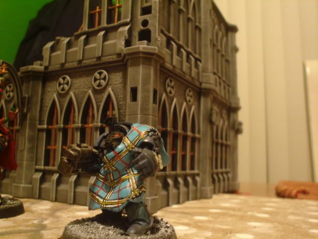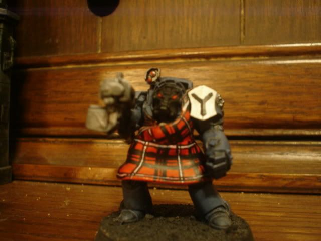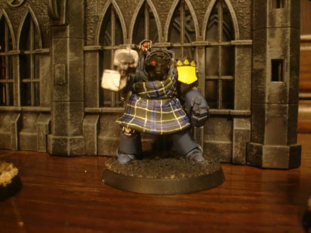Empchild - I do have a couple of figs that have a loincloth type of thin with a tartan on it. I could TRY and get a photo of it done and then post it very soon. About the bagpipe thing, I believe they go under the arm of the piper and not over the shoulder. Just so you know, I was NOT offended by anything that you posted in any way. I am thinking about placing some tartans on my Space Wolf termies that I just put together, but I was not sure of how to do it. I am thinking of painting the inside of the wolf pelt a tartan style and a loincloth on it as to NOT cover very much detail. The new figs are SWEET!!!!! I am having so much fun with them. I have even ordered some new magnets to help me with my endeavor of converting the crap out of a few of them for different styles of play. I need to get a new USB cord to download the pics I have taken. But, thank you for the comments.