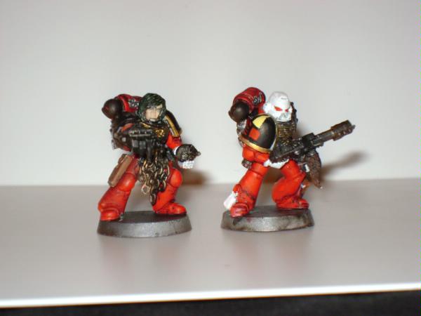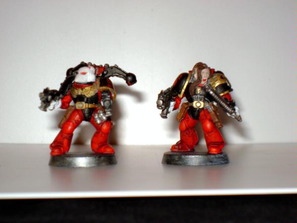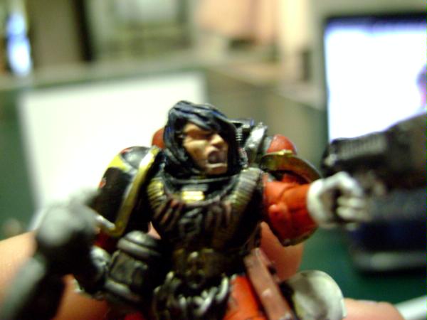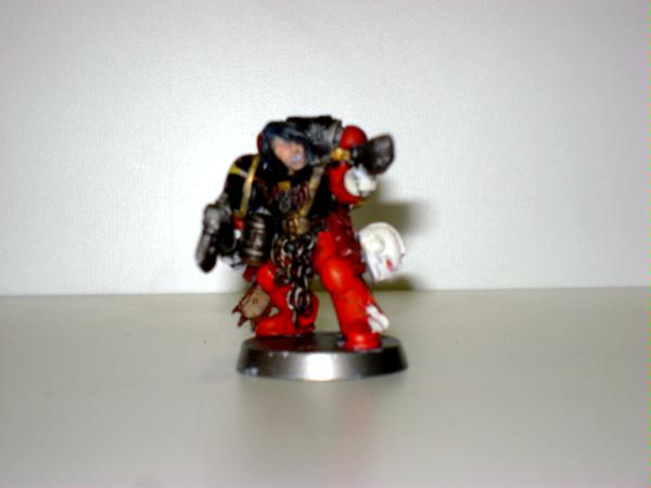 Thank you very much for the critique, I appreciate you taking the time to give your input. As far ar the orange business, that's mostly me not turning down the flash when i take close in shot. The paint job is blood red one white primer so it lightens it just a little. yes I am very wash heavy with my minis, this is in part due to the fact that I am an inexperiencd painter. On the other hand I want the army to have a dingy-dirty look to them, it shows to me wheretheir priorities are and the grueling toil that perform on a daily basis. The apothecary is actually noT painted white, I used bleached bone because I think of it as a nuance that make the chapter alittle different. Yes basing is important, I'm still waiting on a couple things that I need to base them. I hope that clears a few things up, thank you again for you input. I'm going to definetly take your advice on the hair and highlight it a little more.