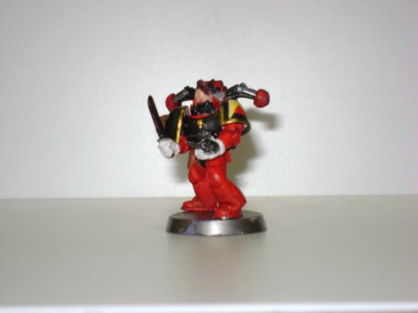The captain of first company "The Pathfinders", Captain Tylerion "The Vain". Tylerion is the diplomat/spokesman for Minthras Ra and thus the chapter, acting as a go between with the chapter and external forces. His personal duties include managing contracts with the inquisition, treaties, and other business arrangements. His natural wit and abilities have led him to have a higher opinion of himself and a some what arrogant cavalier attitude. His command squad is comprised of the veteran brothers of his company as well as the infamous Apothecary "Mad" Zhivago.