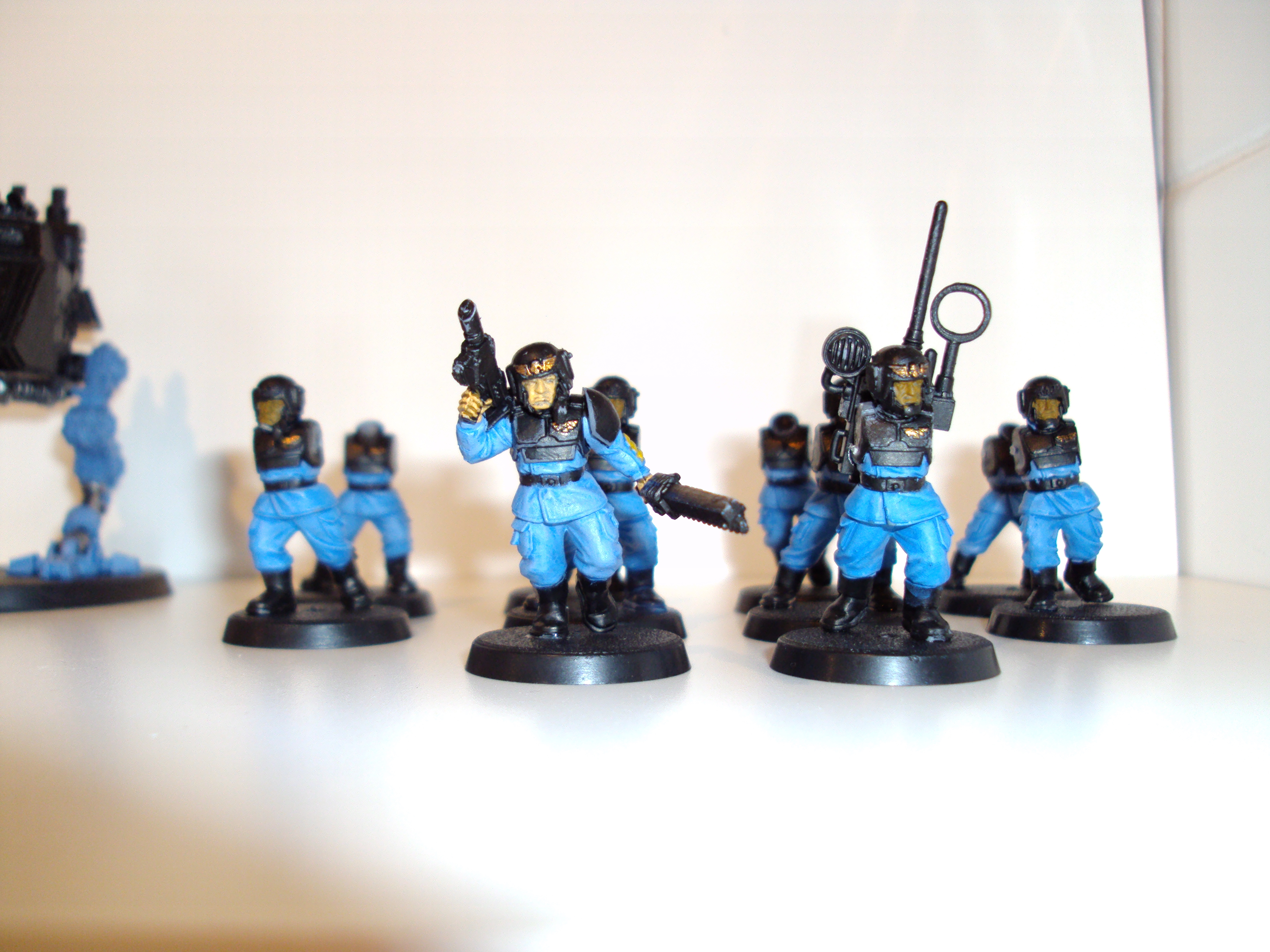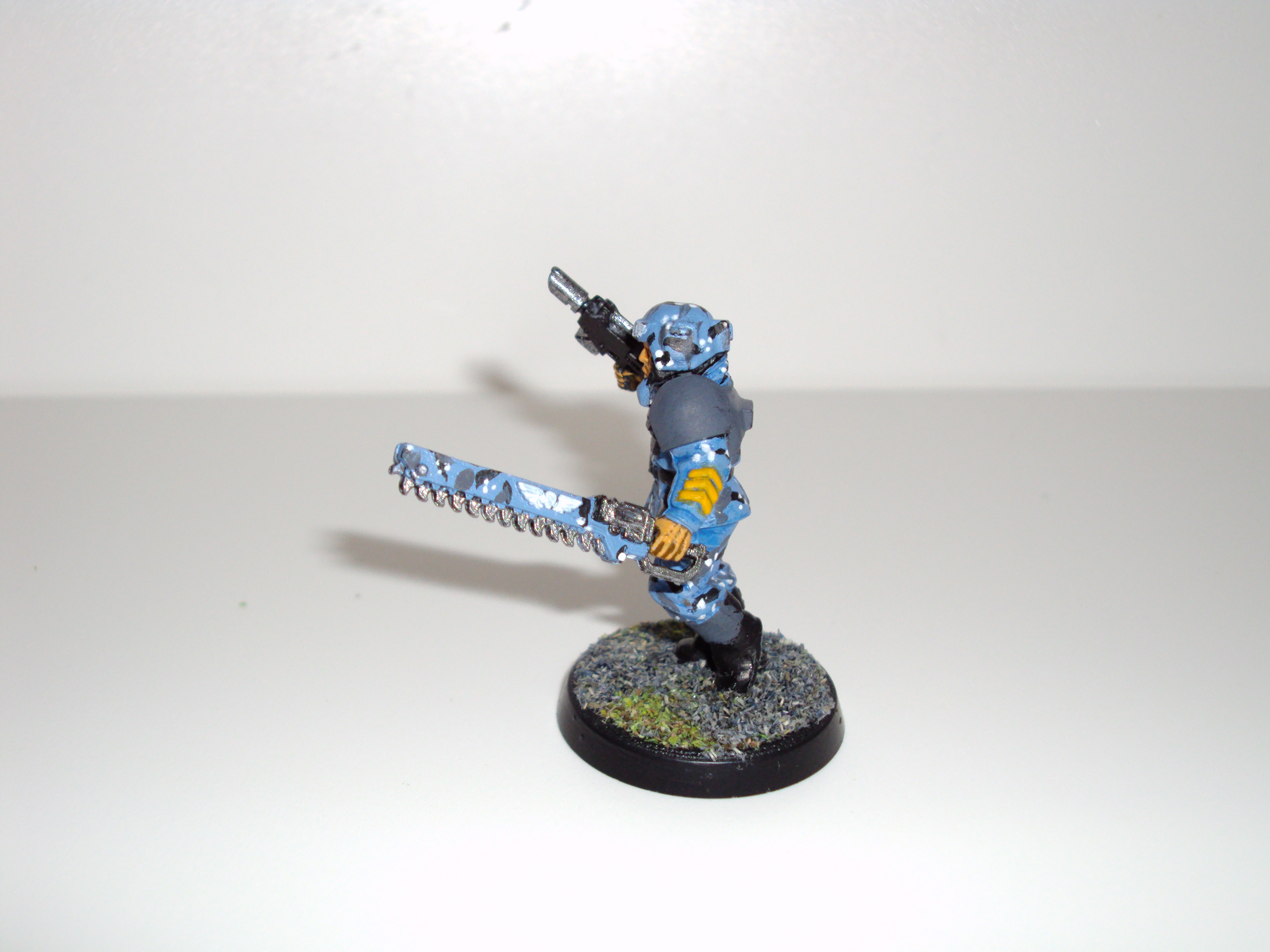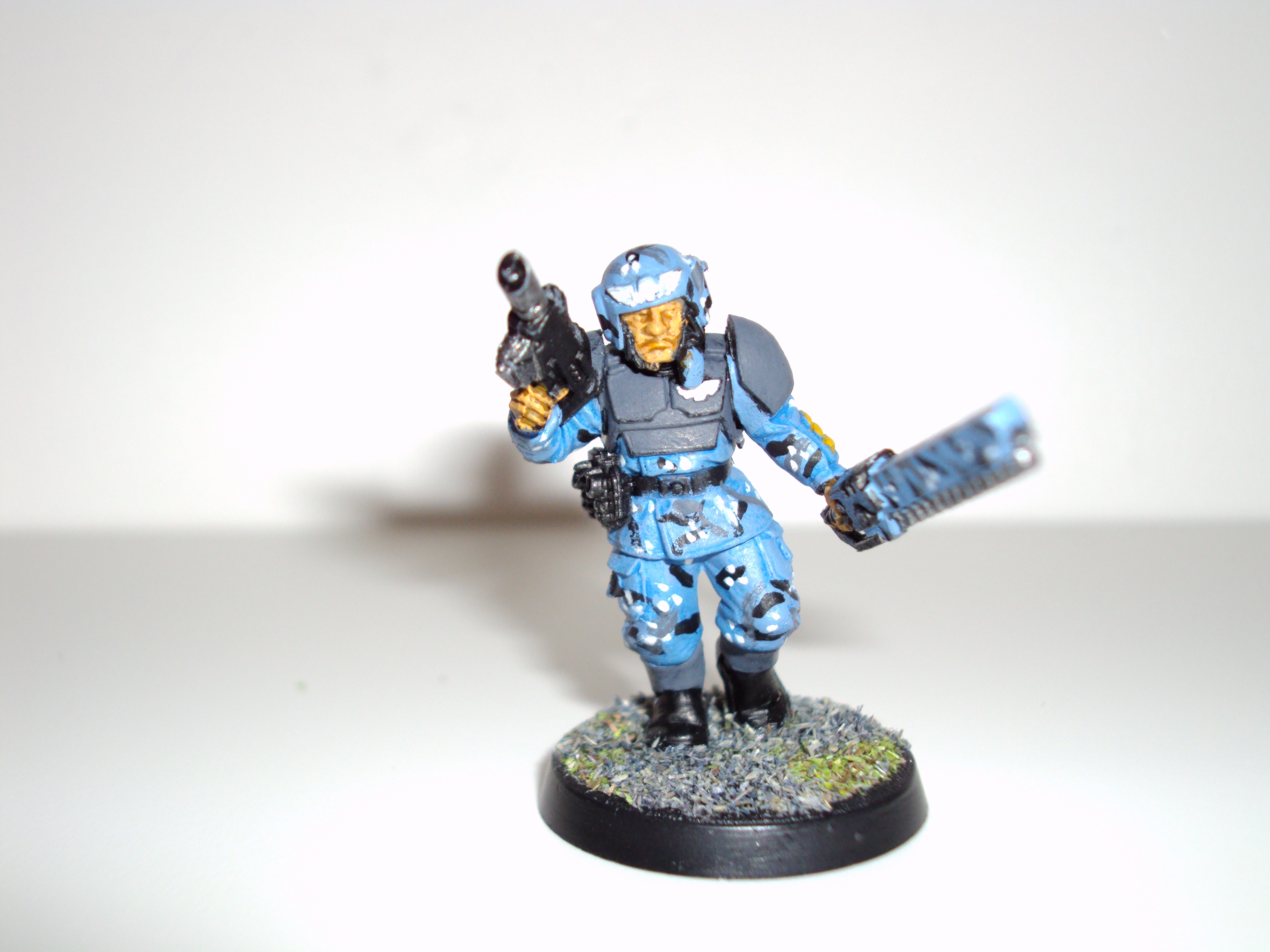 just thought I would share my new project with you all. I have been painting Imperial Guard for about 3 weeks now, and really liked the camo scheme for the 122nd Cadian. However I like adding my own touch to this army aswell so decided to customise the uniform look slightly.