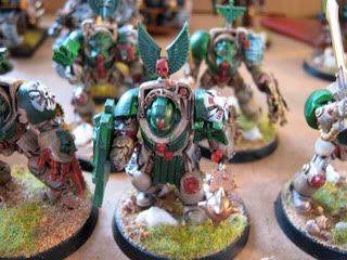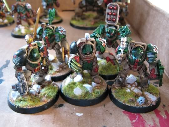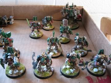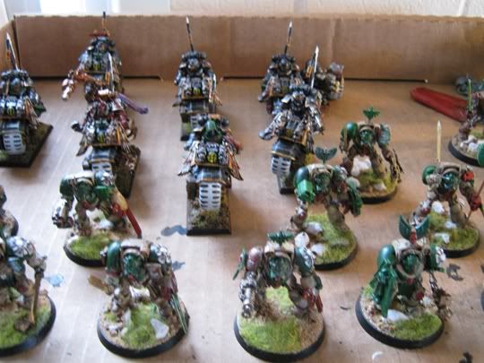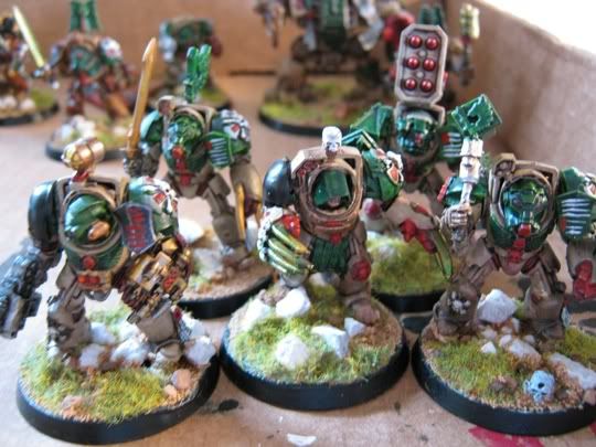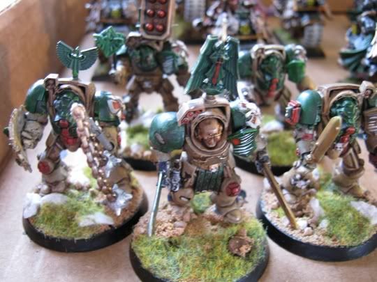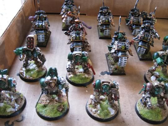 So I finally got around to basing my dark angels army, it's a bit of a rush job and could still use lot of detail work but I figured I might as well post some pics. I'm not in love with how the photos turned out I took them on a cellphone.