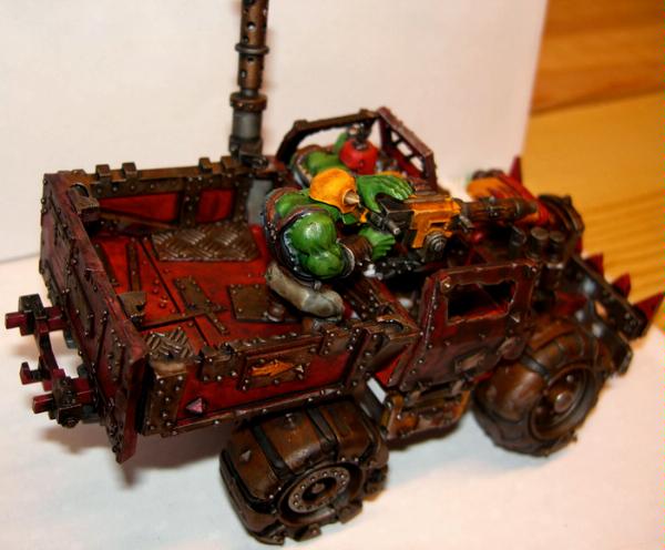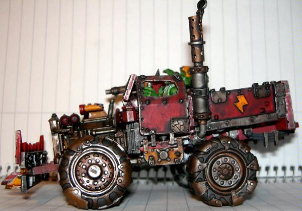 It's obviously just a cut down trukk kit, but I really wanted a kind of pickup truck feel. I guess I wanted to make an orky version of the militia truck Hunter S. Thompson comes across in the desert in Fear and Loathing in Las Vegas. Also, I wanted some spare parts for other projects.
