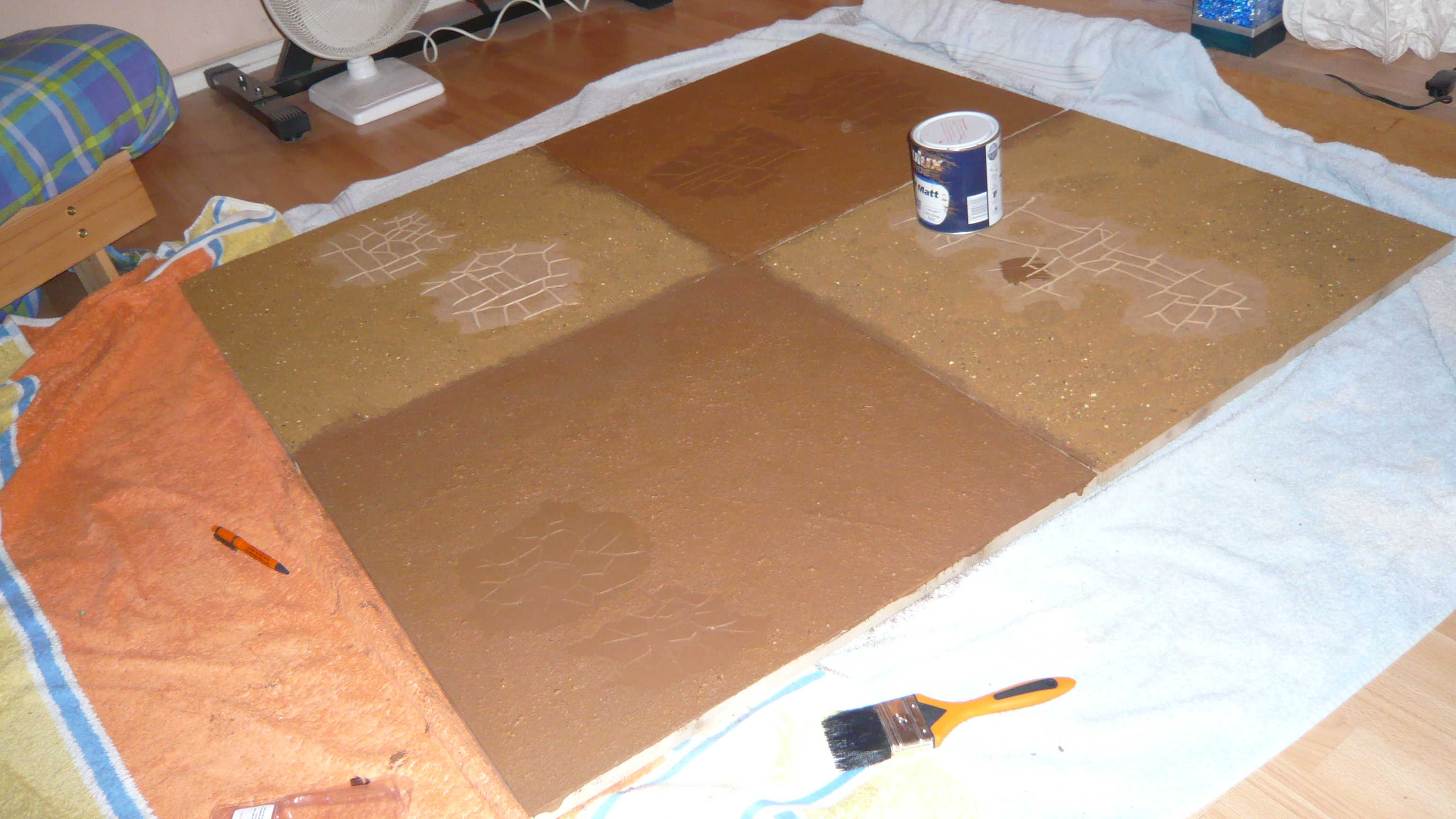 5) A couple of days ago I also had another man at B&Q mix up paint to match Bestial Brown, Vomit Brown and 50/50 Vomit Brown/White for me. I am now halfway through painting the board you see below.