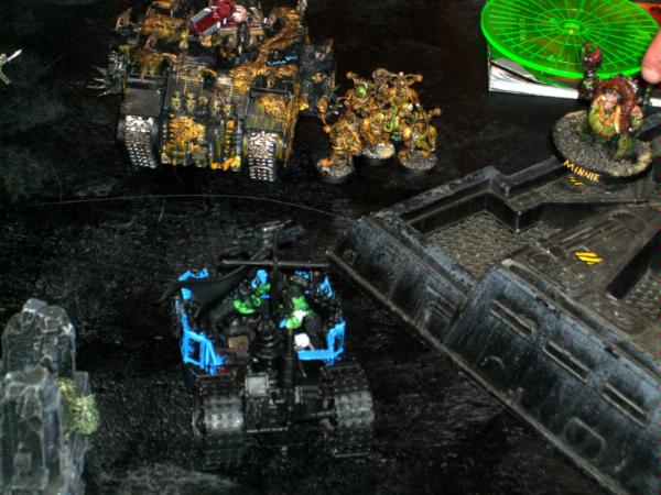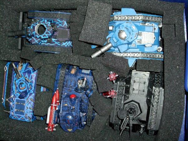 So yeah... 3 land raiders, scary stuff. I think his plan is going to be something along the lines of park his tanks on an objective, gun down my tanks, then move forward to finish me off.