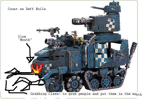 Hey just got a battle wagon and wanted to have a deff rolla for it but don't feel like paying $10 for a deff rolla and not use the lobba so I had an idea looking at the grabbin' claw on the front of the box.
