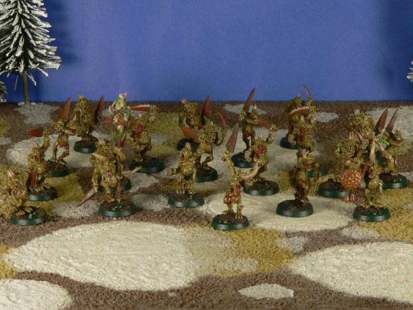 Skaven Clan Pestilens gallery added recently. While I do not agree with all their colour choices, it is a good example of what I mentioned above: painting the models in much lighter colours than you would normally do.