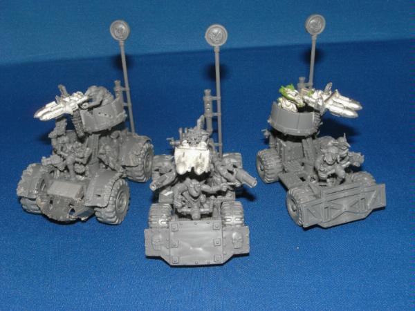 The ground pounders have their Killa Kanz, and the speed freeks have their warbuggies. I've run one off warbuggies in smaller games (I'd have 30 points left and the first thing I think of to fill them is a warbuggie.) they always disappoint when you take them alone, so I'm thinking they can work well, but only if you take a squad of three or more. They can make great fast moving fire support, and three of them should be able to get at least one hit.