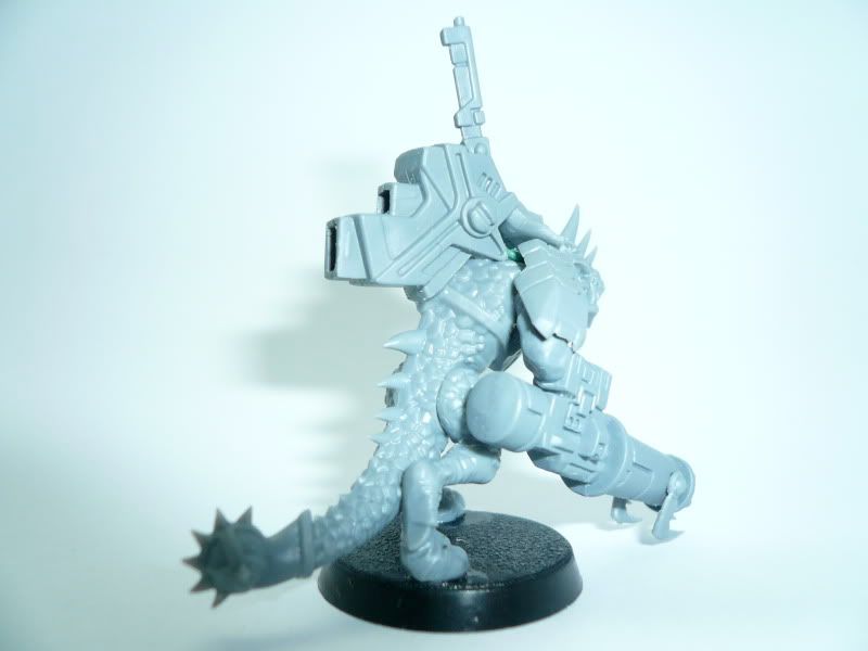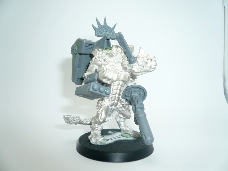 I like him so far, but I need to add some more Lizardman bits and GRIMDARKify him a bit.