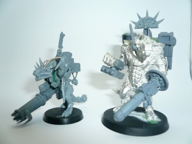 @Krusty: Saurus (possibly even skinks, i need to see which works better) will be fire warriors. Krox are crisis suits, but they are much too big for stealth suits (which aren't too much bigger than fire warriors).
