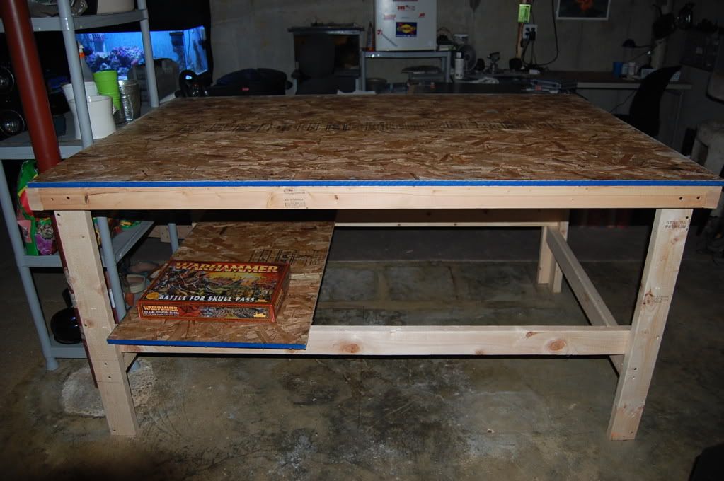 nice table. it'll look great with some terrain. the citadel trees mite look good. but i dig the man cave you got goin there.
