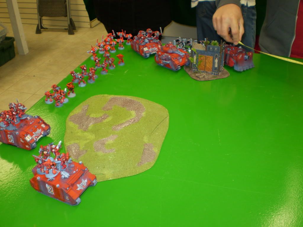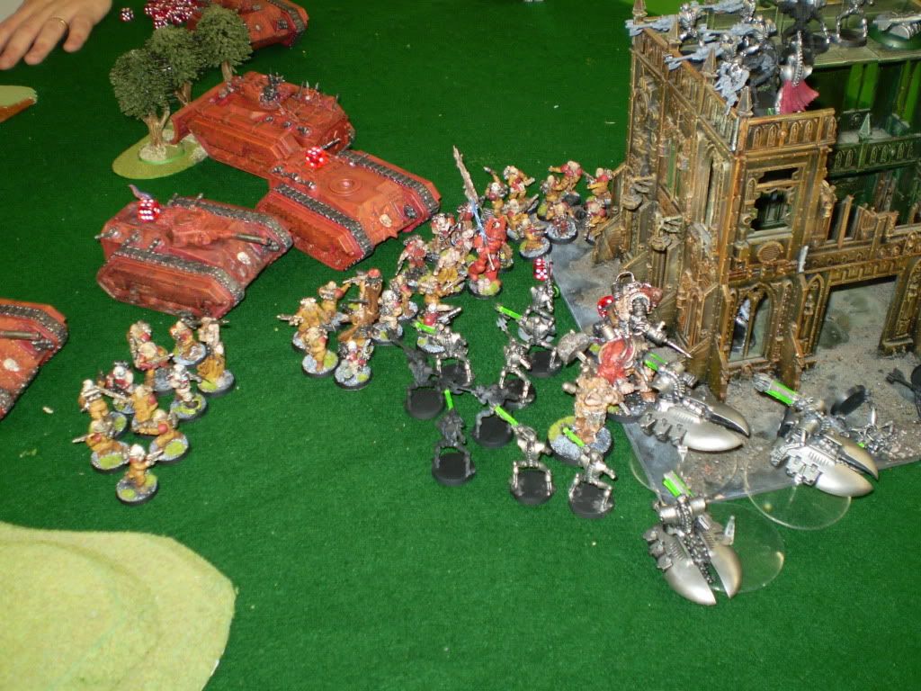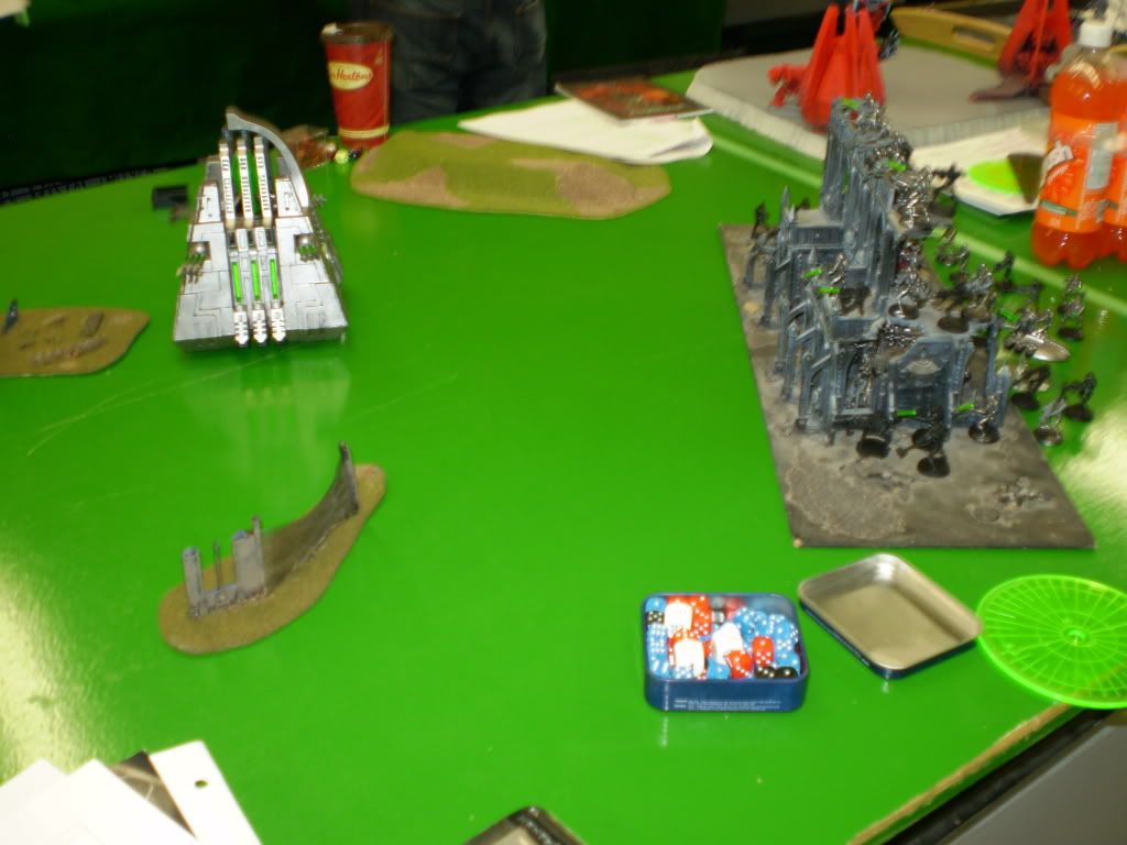 Here in my first game the player was playing a beatiful painted blood angels army as ravenwing, I could be corrected on the army name, the chapter that has a special character that gives jump packs fleet. When I looked across the board I thought he was going to rush in and try to phase me out, so I deployed my Monoliths to counter this. He instead played a rather shooting game, out ranging me. So this was an awful mistake, I should always deep strike my monoliths!!!