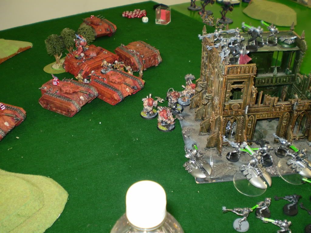 So for about 4 turns we really just did nothing moving up the monoliths then ending the turn bascially. Oh and he shot down a monolith on the first turn with a lascannon predator.