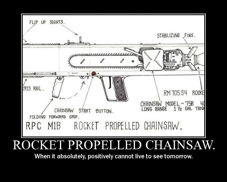I draw the line at rocket propelled chainsaws. You don't need anything more than that.