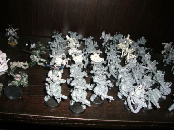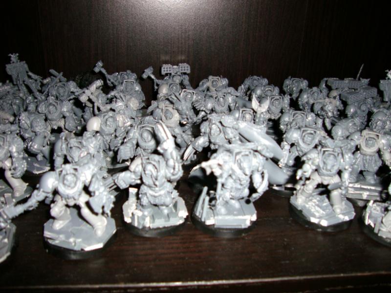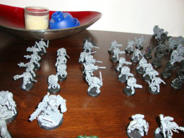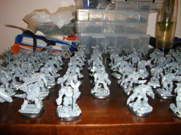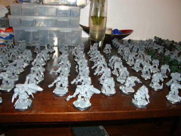 Automatically Appended Next Post: Ok - Here is an army shot I put together from tonight. I have about 40 marines and 15 termies to build after this. Then its paint paint paint! If anyone has any ideas/schemes for a darker kind of space wolves (not shadow grey, but dark grey or dark blue/grey would be cool) then please let me know!