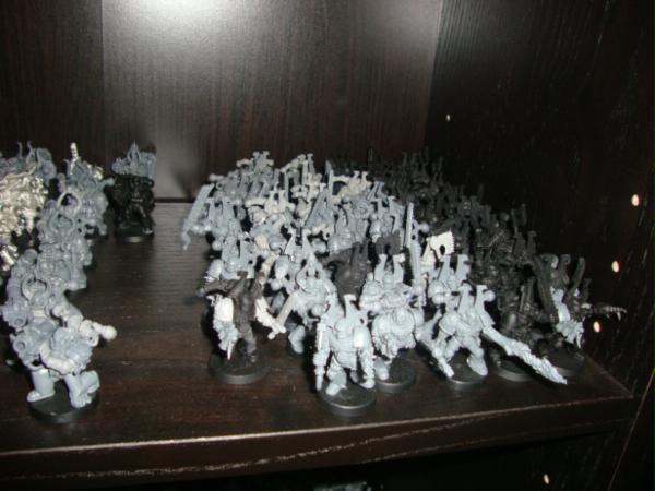 Death Gear wrote:What do you do for a living to pay for all this stuff if you don't mind me asking  I work in IT. Though it doesn't pay the most. But I've learnt 2 things while Ive been collecting. #1 - Never, ever, ever pay retail in Australia. Ever. Malestrom's discount, as well as the strength of the $AU against the British Pound, now means that a Battleforce which costs $150 in my local GW costs me $77.50 from Maelstrom. That is $2.50 off of the 50% discount gained by working at GW, and far far larger than any distributors discount. #2 - Ebay and bitz are your friends with the Space Wolves kit. Honestly, so much is inexpensive to acquire. I bought 7 Wolf Guard boxes to begin with, as well a unit of regular SM Termies. I ended up with so many excess weapons, I'm only just running out now after creating 80. And the weapons are the most expensive part to buy on ebay - so I've only needed to buy torsos, legs and shoulders. Same with regular marines - Torso, legs, shoulders and backpacks are all that is needed, and its cheap to bitz order them - Hoard O Bitz was selling 8 zerker legs for $2, and torsos for about the same. Munch Munch! wrote:Dear god! Thanks?