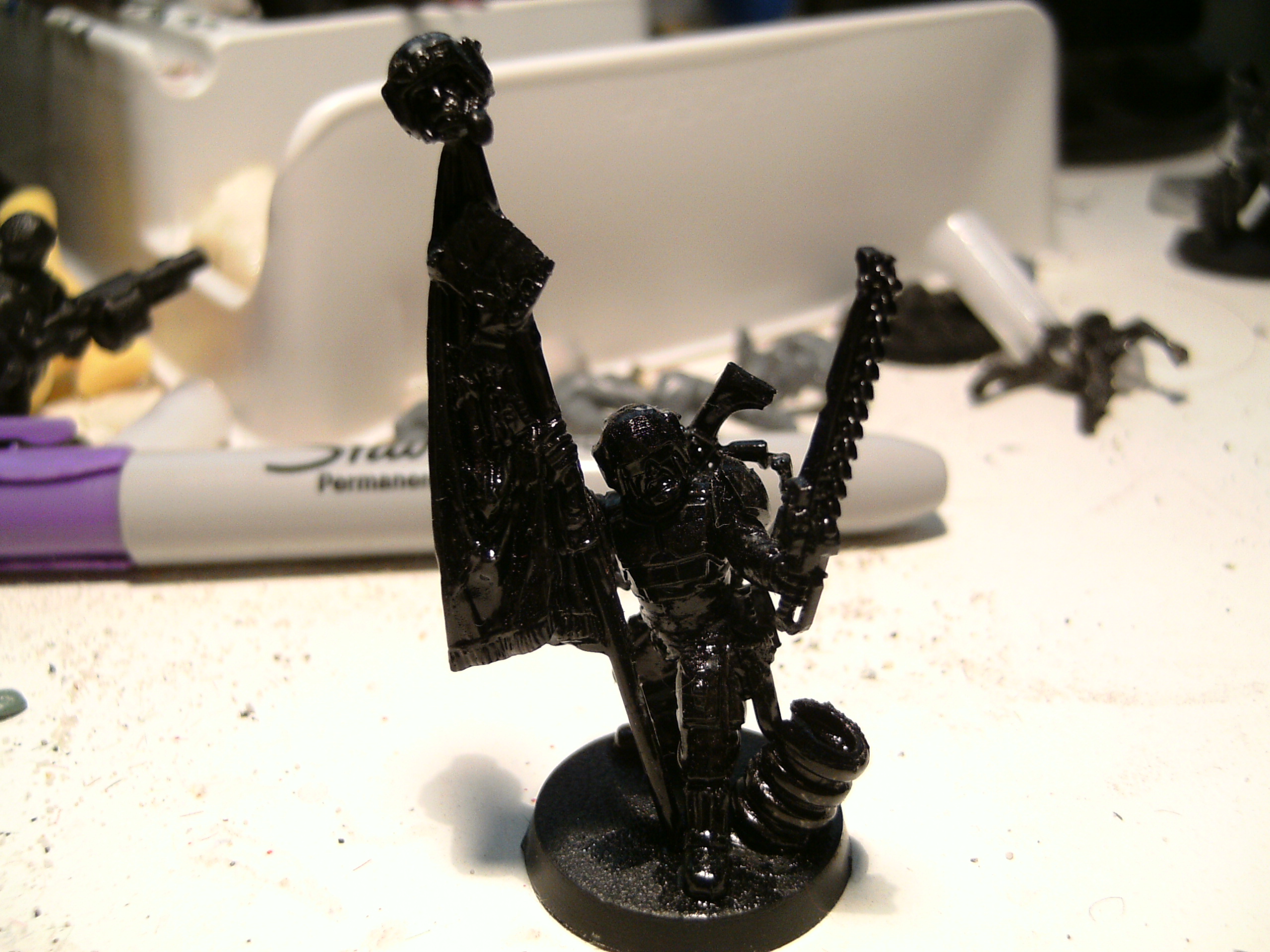 Does make me wonder how he fires a lasgun while holding that massive banner though...