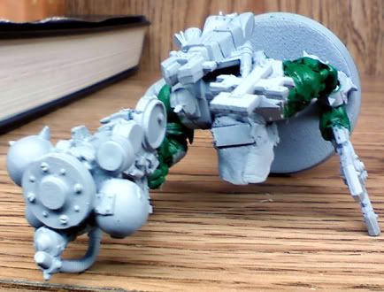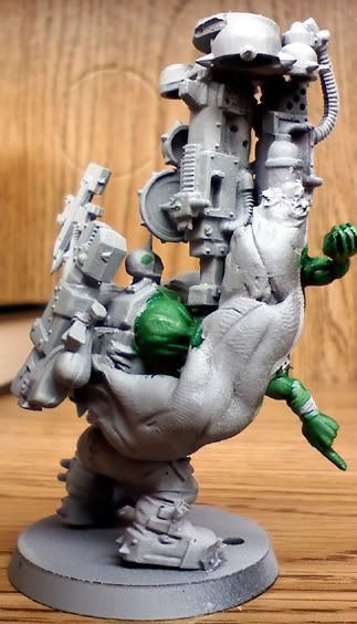 SA gun is big but it is balanced out by the backpack and the snotling suction tube on the model's left side. The left arm from the runt herder model is way too small to balance out the model.