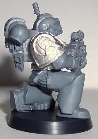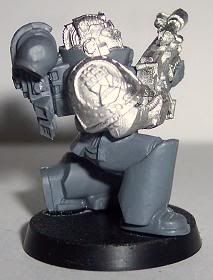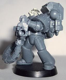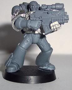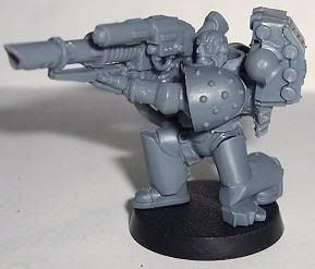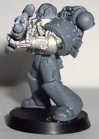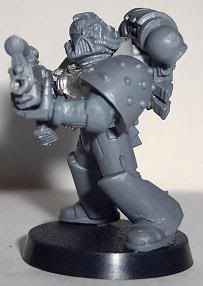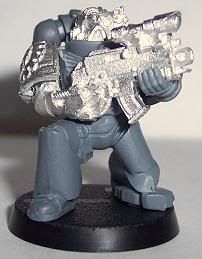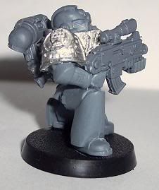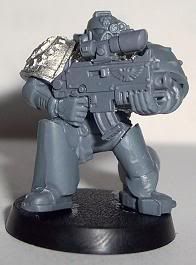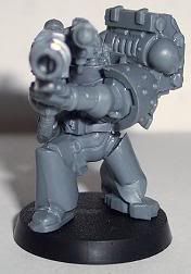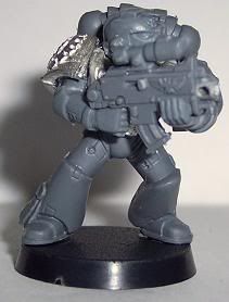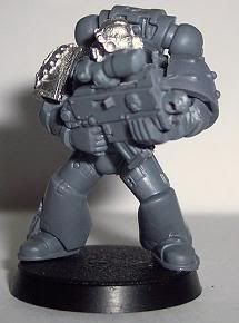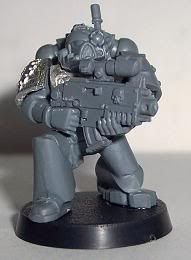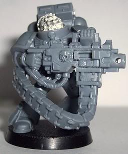 Since I have come back to the hobby I have jumped around to and from about 10 different projects. I have finally decided that I need to stop playing with projects and start a workable army. I chose Iron Hands. For those of you who have followed any of my other WIPs you will know I get to OCD with kitbashing or bit swapping armies, this one is no different. This army will be more themed for fun play than a competitive tournament army. It will be a a very heavy/shooty army. Themed with a firing line feel for the squads and a heavy, cold and mechanical feel for the figures. I want a very oppressive and/or Terminator feel. I am trying to get at least one Iron Hands bit on each figure, not counting shoulder pads. Storm Bolters and Thunder Hammers are a sign of position in the Hammer of Ferrus sect. The recipe for my figures are: