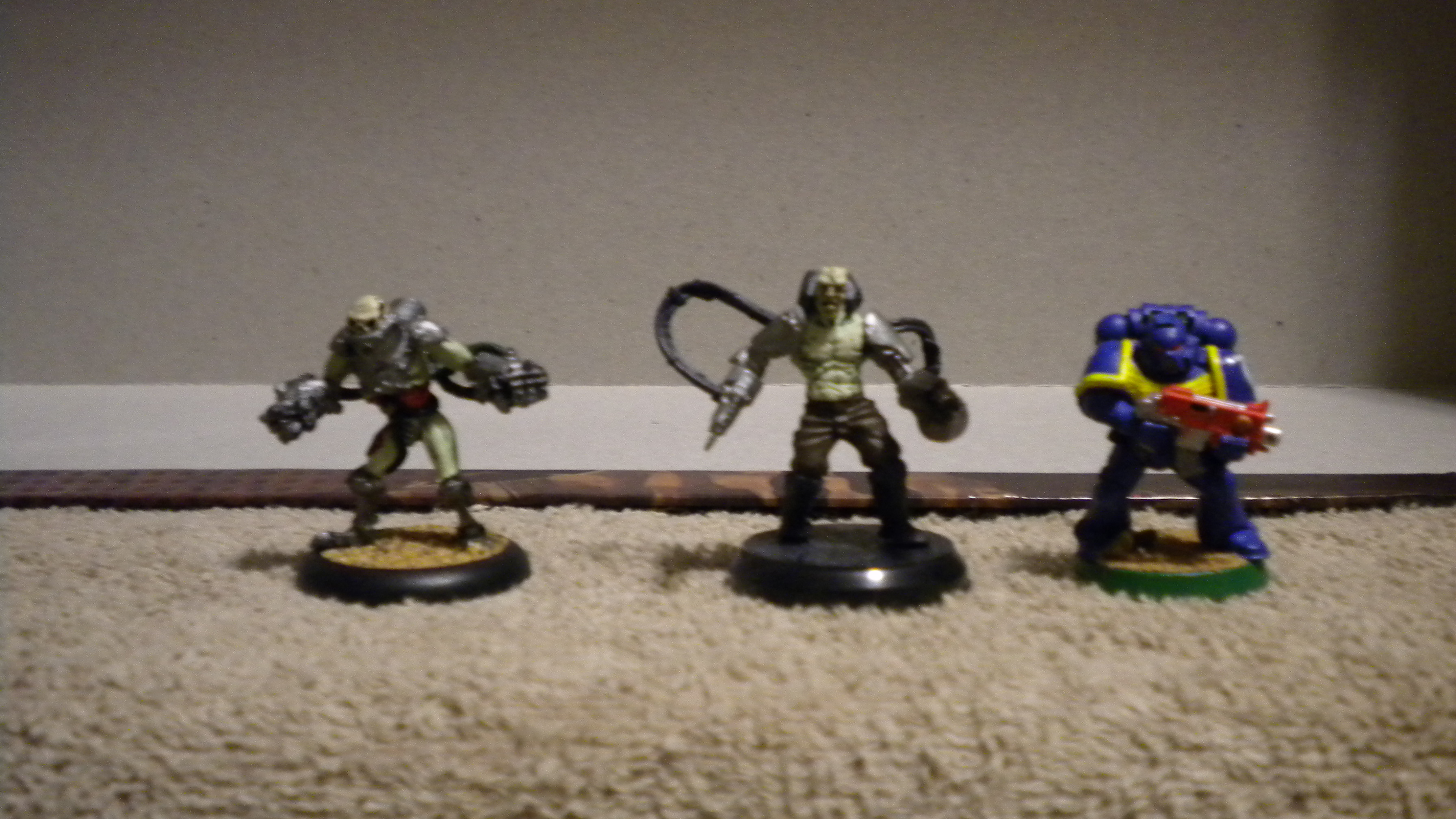 The next photos got a comparison between a Mech thrall from Warmachine, a zombie from the box called a "Reanimator", and a Space Marine from GW.