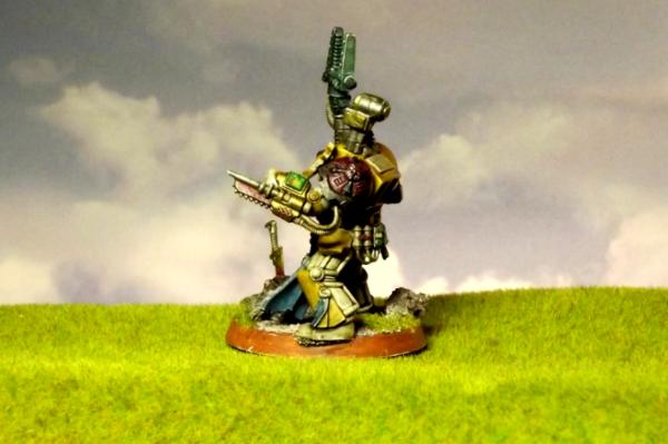 With this model completed and the Mini Defiler on standby I only have one term squad and landraider to complete the army. So close yet probably two months till completion.