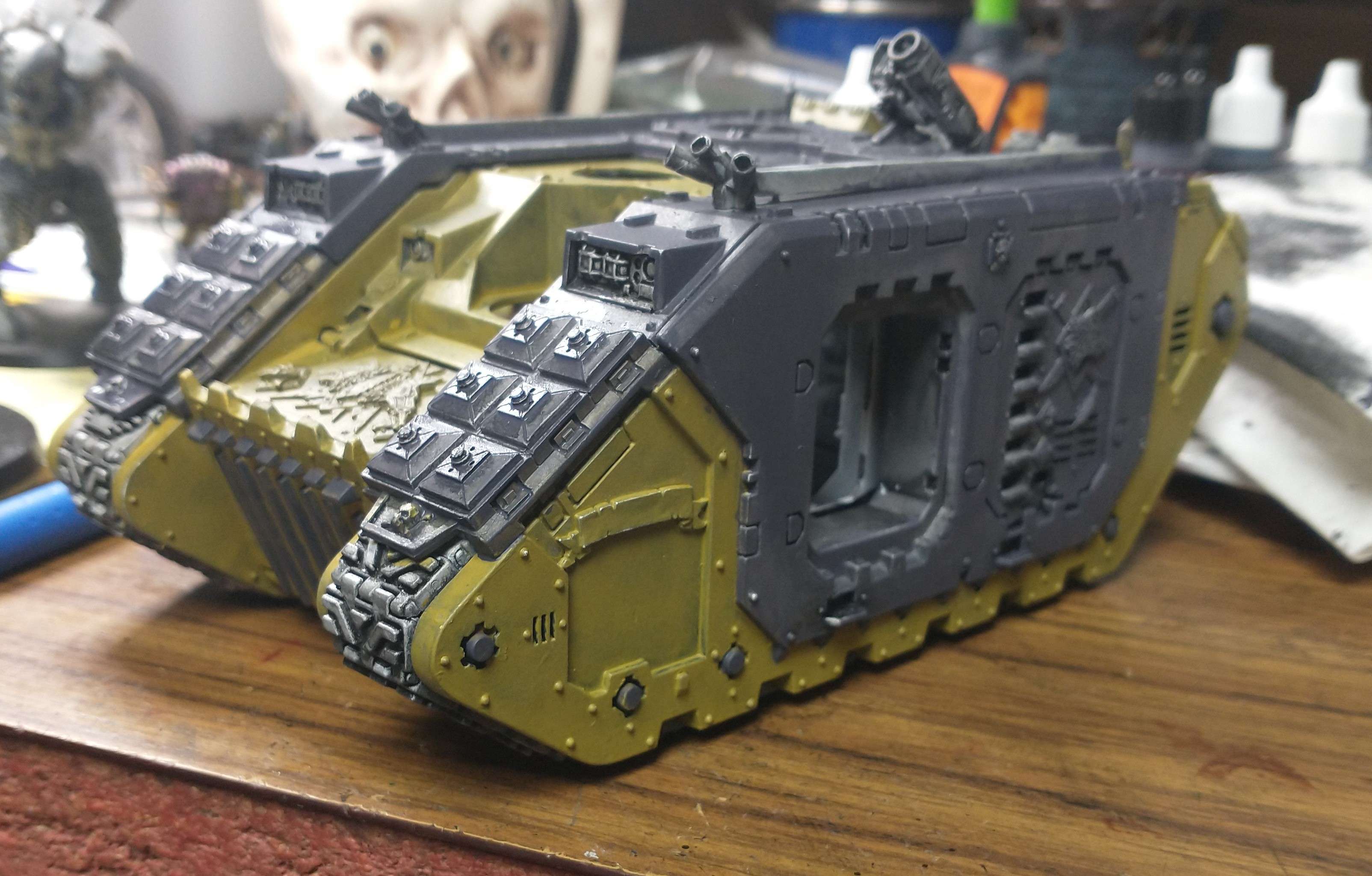 Land Raider getting primed now and hopefully painted this weekend. After that it's just printing off base adaptors to make all proper units 32mm and organizing what my point values are. Glad this army is going quick because I'm ready to get my Necron, Tyranid, Drukari on and those armies need some time and effort to complete.
