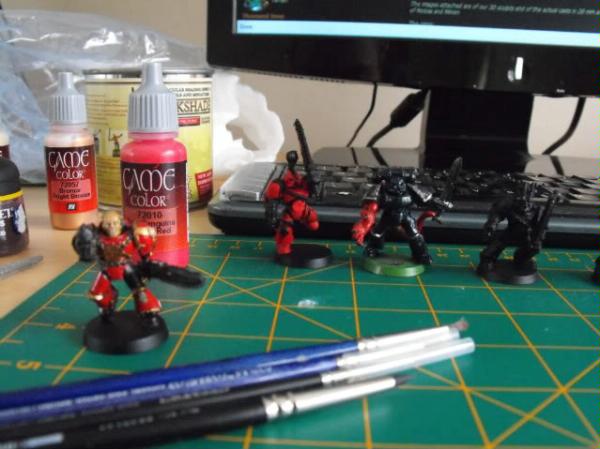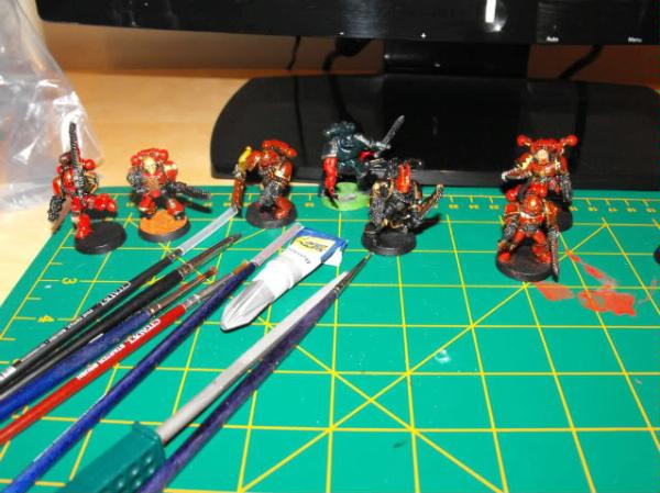 frogboy wrote:@teek thanks dude, i used the speical technique of shadow boxing  no really i just sprayed them black, drybrushed with blood red first using very little paint, do loads of 'coats' like that, then i used a brighter red from vallejo, rojo sanguina (bloody red) its much brighter than the GW ones, anyway i then drybrushed it with that, once the model was done i used army painter dip 'quickshade' its called, the strong tone one, easy