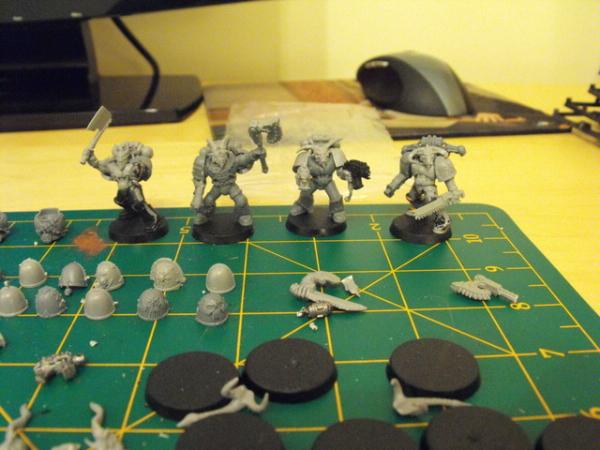 I'm putting together a small Chaos Space Marine army, It's going to be a bit of a challange for me finishing a whole army(never managed to achive that yet), I origanally started this army back in the last edition of the codex(when lords could have demon gifts) and after GW changed it i stopped work on this as i wanted a Alpha leigion supported with cultists, i've scrapped that idea now in favor of a more Khorne based army, still with a few Alpha ligionares and some Dark Angel renegades thrown in the mix...