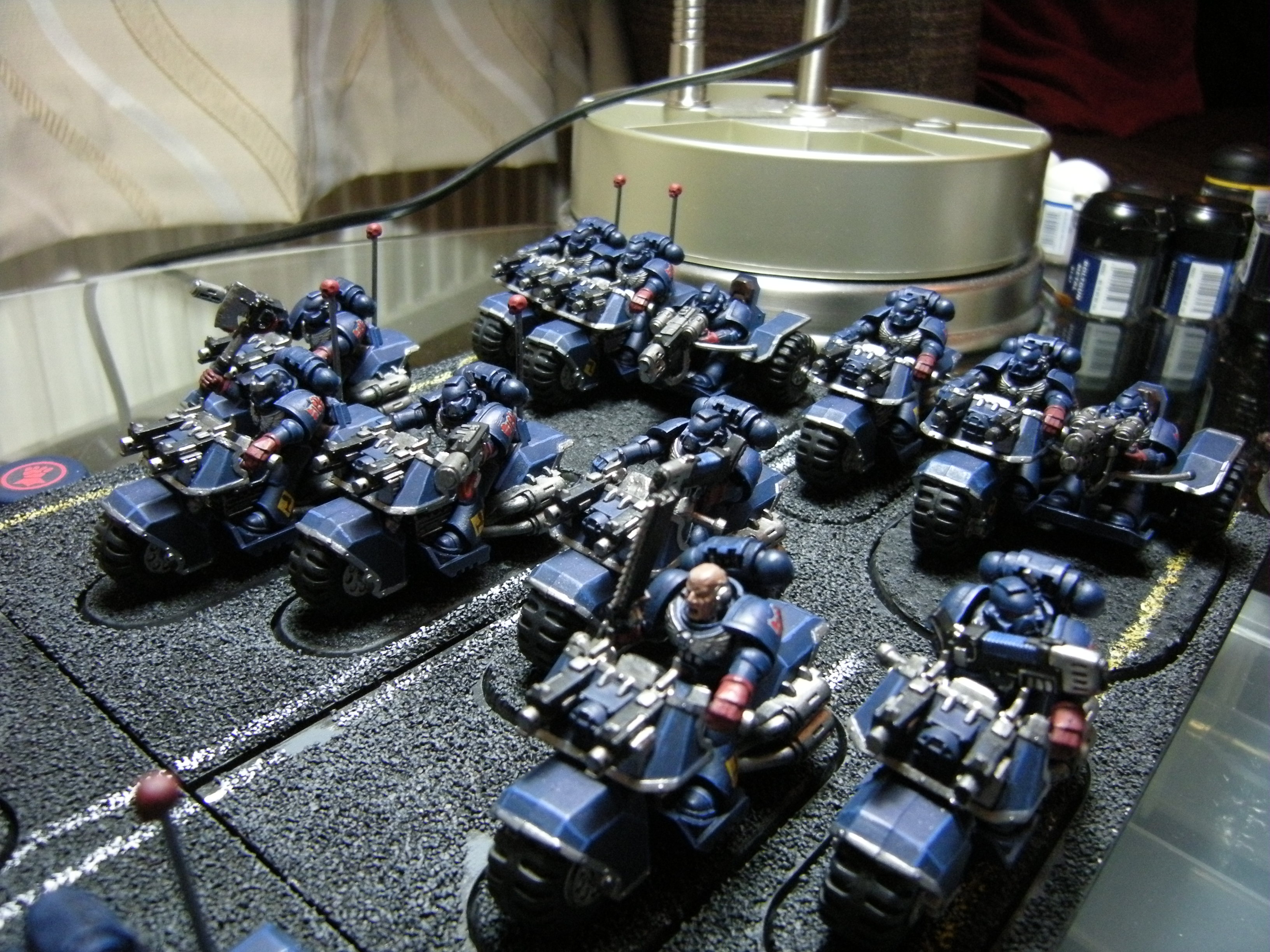 1st squad, 2 meltas 1 attack bike melta, sarge has power weapon