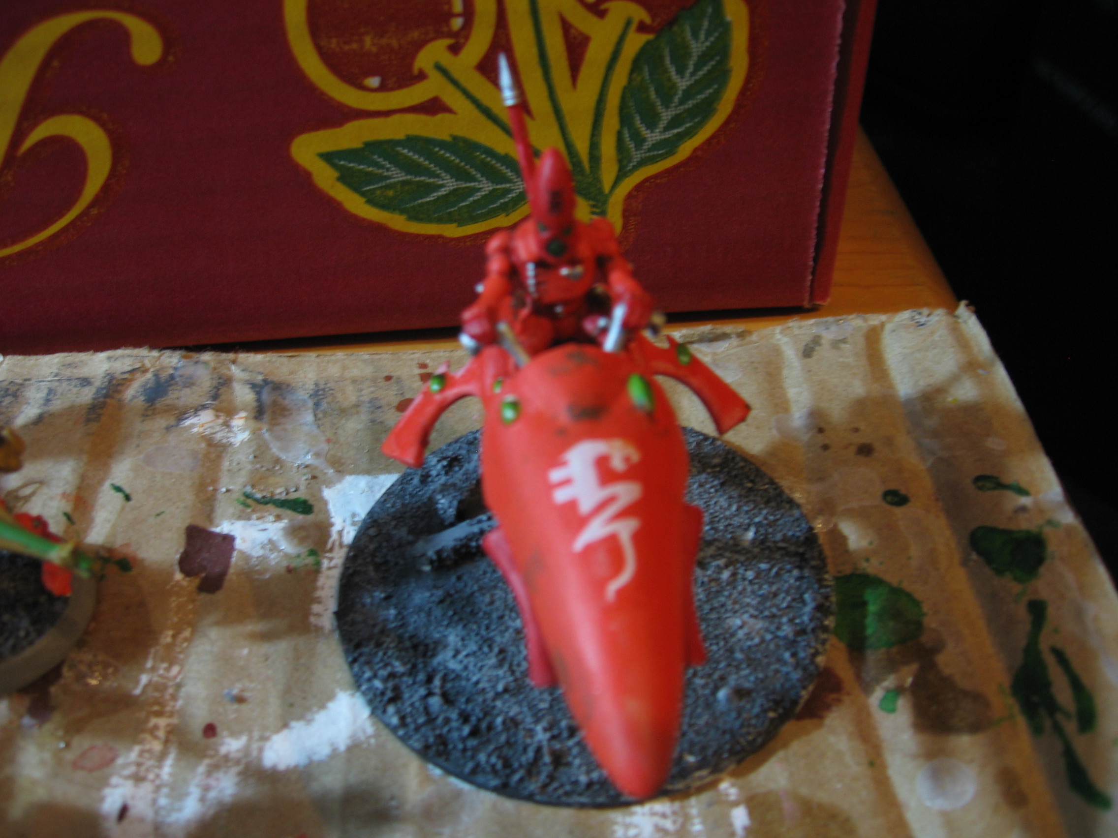 The jet bike got a little messed up when i was spraying it with sealant because there was black paint in the priming box that i didn't notice was still wet . Also my scheme is my 2 favourite colours red and orange. The box in the background just has the based for my jetbikes, my super glue ans some other modeling tools. I guess i could bring my camera. But do you not have one?