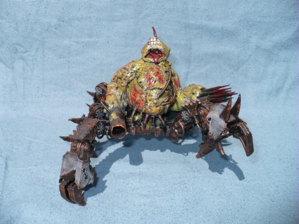 If you could give us some more close-ups of the commander however? Considering the sculpting job you did on the Nurgle walker, I'd think you'd be up to the task of giving the commander some... heh... "gifts" from Daddy Nurgle. Leading and gathering troops against the "false" god you'd think he'd sort of become more like a Nurgle Champion than a simple renegade Imperial Commander. Or not, if that doesn't fit your fluff. Just a thought  A boil here or there, a sagging eye or some puss-spewing thingie. I see from here that the close combat weapon arm looks like it sports some sort of deformity. Can we get to look closer at that?