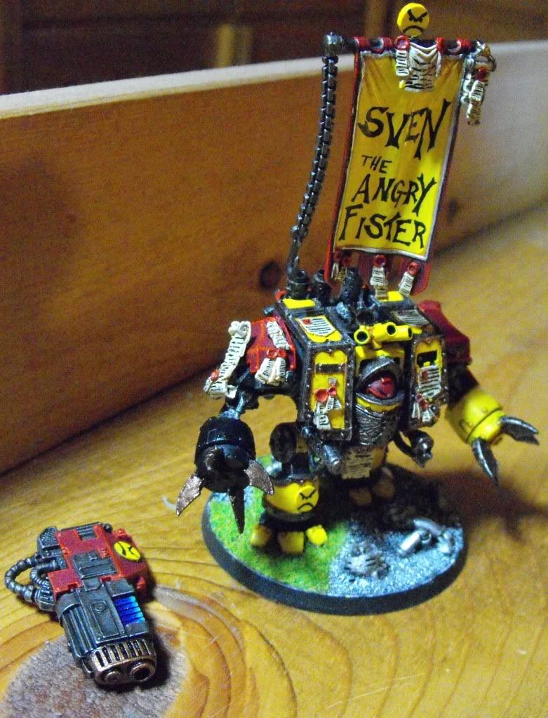 And Im sure some of you noticed that he has a meltagun on him as well. The reason is because he is ready for the Blood Angel Codex as well, in hopes a returning Dreadnaught character there as well.